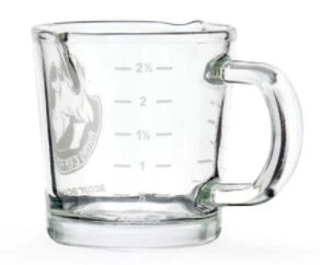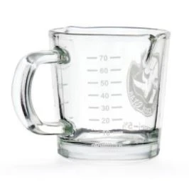 RHINO COFFEE GEAR, does it again with another durable addition. This 70ml (2.4ounces) double spouted shot glass is ideal for pulling double shots. The handle protects your hands from heat, and graduated marks make measuring a breeze. Now with an updated handle design for ease of use.