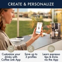 Brew perfectly customized coffee right from your mobile device to your Dinamica Plus with the De’Longhi Coffee Link App. The app gives you remote access to many of the machine’s features, lets you save your personalized espresso recipes, and provides tips and machine maintenance assistance.