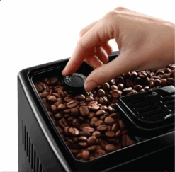 You shouldn’t have to settle for a watered-down version of your favorite iced coffee at home. With the world’s first and only fully automatic espresso machine with iced coffee technology, you never have to. By brewing at a lower temperature, allowing for pre-infusion (coffee grounds saturation) and offering the ability to customize to extra strong, De’Longhi TrueBrew Over Ice™ brews smooth, full-bodied coffee over ice that is never watered down. You can also enjoy a variety of the freshest, traditional coffee beverages at home. An automatic bean-to-cup machine, Dinamica offers easy to brew beverages: espresso, long espresso, drip style coffee, and TrueBrew Over Ice™. With an integrated advanced manual frother, espresso with milk classics like lattes and cappuccinos come complete with rich, long-lasting foam whether you use soy, almond, coconut, rice or cow’s milk*. To deliver the freshest brew possible, the Dinamica’s revolutionary technology grinds the perfect amount of your favorite beans, leaving no residual coffee in the brew unit, ensuring your next cup is just as fresh. And cleanup is a snap, taking half the time of other machines. Unlike the competition, no chemicals are needed–just pop out the drip tray and drop it in the dishwasher. Expect every cup to be exactly the way you like it with an automatic touch-sensitive interface. Dinamica features an adjustable steel burr grinder to control the grind and strength depending on the coffee beans origin. It’s all designed to keep your daily brew from becoming a daily grind.