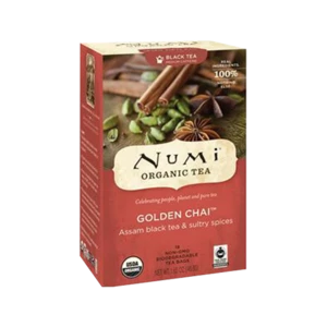 Our Golden Chai is a traditional Indian treasure. We blend organic hearty Assam black tea with organic cinnamon, cardamom and ginger for a rich and spicy tea.