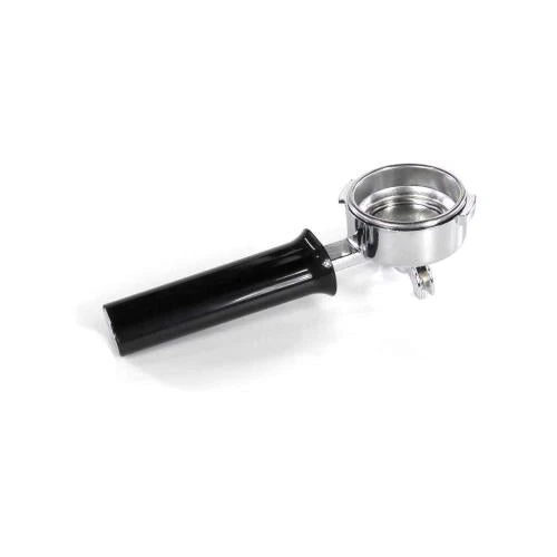 Complete Gaggia portafilter assembly with handle, spouts, and double shot pressurized filter basket.