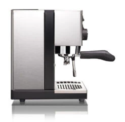 The Rancilio Silvia’s classic steel lines, rugged construction, and semi-automatic controls make it a standard among hobbyists and professionals.