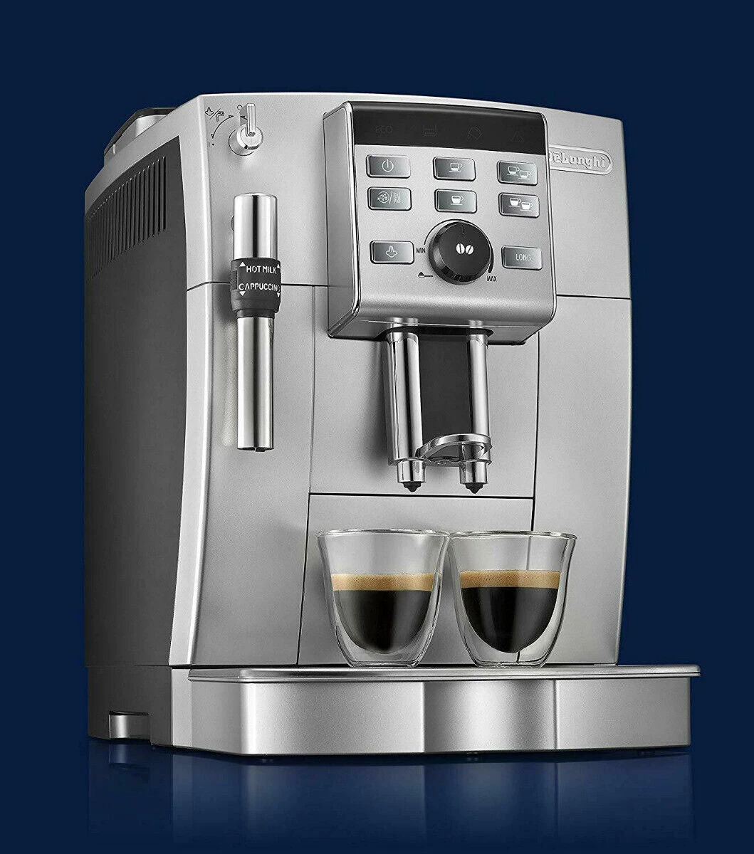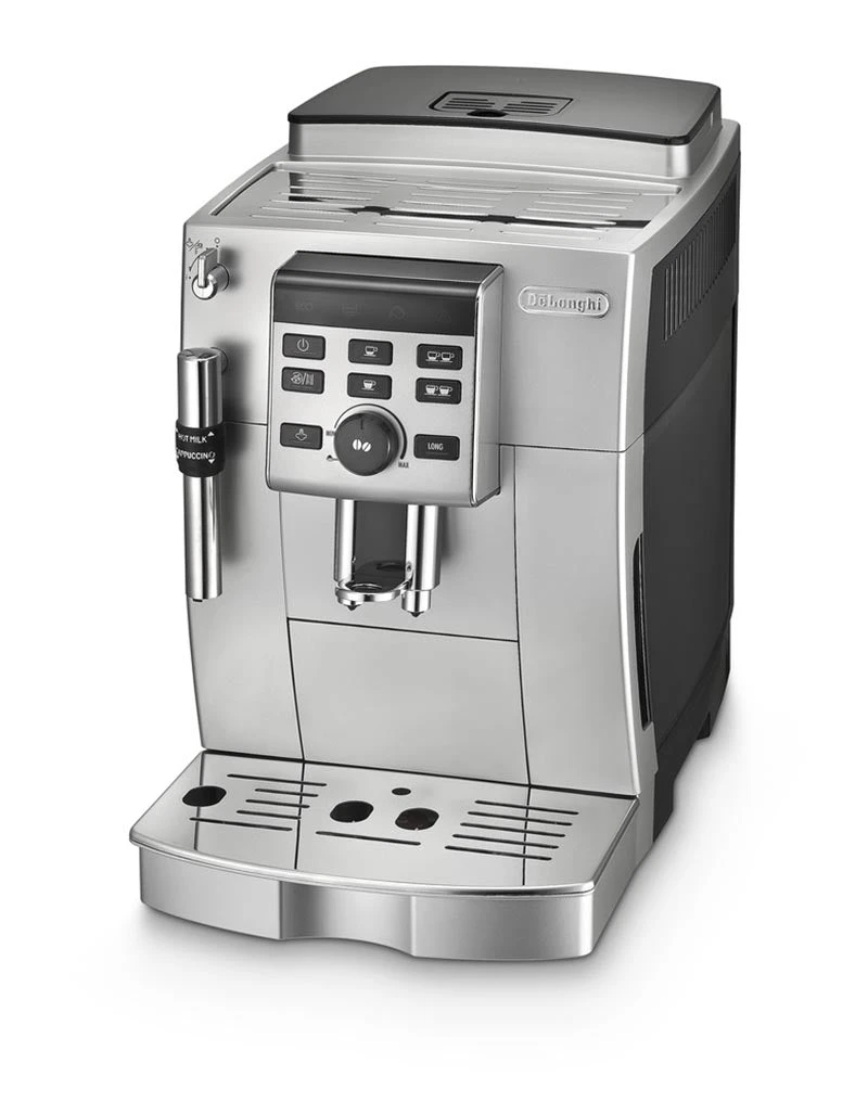 The DeLonghi MAGNIFICA S offers a premium bean-to-cup experience with a compact form, using very little counter space. This Super Automatic Espresso Machine allows you to easily prepare barista-quality drinks. Prepare drinks such as Cappuccinos, Hot Milk, Espresso, Long Coffee, and more.